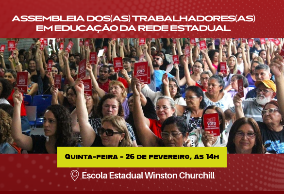 A assembleia será realizada no dia 26 de fevereiro (quinta-feira), às 14h, na Escola Estadual Winston Churchill.