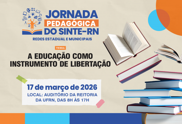 Vem aí a Jornada Pedagógica do Sinte-RN! “A educação como instrumento de libertação” é o tema do evento, que tem como público-alvo trabalhadores das redes estadual e municipais, filiados ou não filiados ao Sinte-RN.