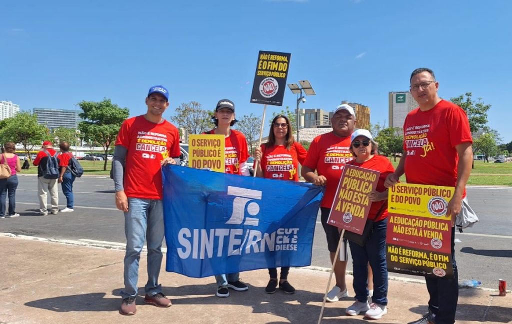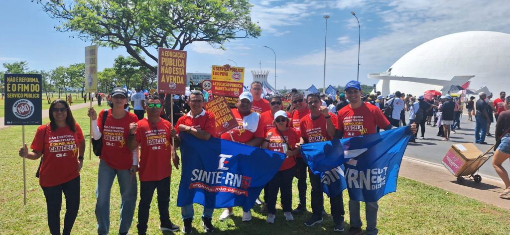 Dirigentes do Sinte-RN estão em Brasília (DF) nesta quarta-feira (29/10) participando da Marcha Nacional da Classe Trabalhadora contra a Reforma Administrativa. A mobilização reúne servidores públicos das três esferas, representantes de centrais sindicais, confederações (entre elas a CNTE) e movimentos sociais de todo o país.